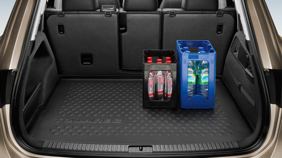 The electronic tailgate, with programmable opening angle, can be opened and closed via the Touareg’s ignition key. Sensor strips prevent the door from closing on your fingers.